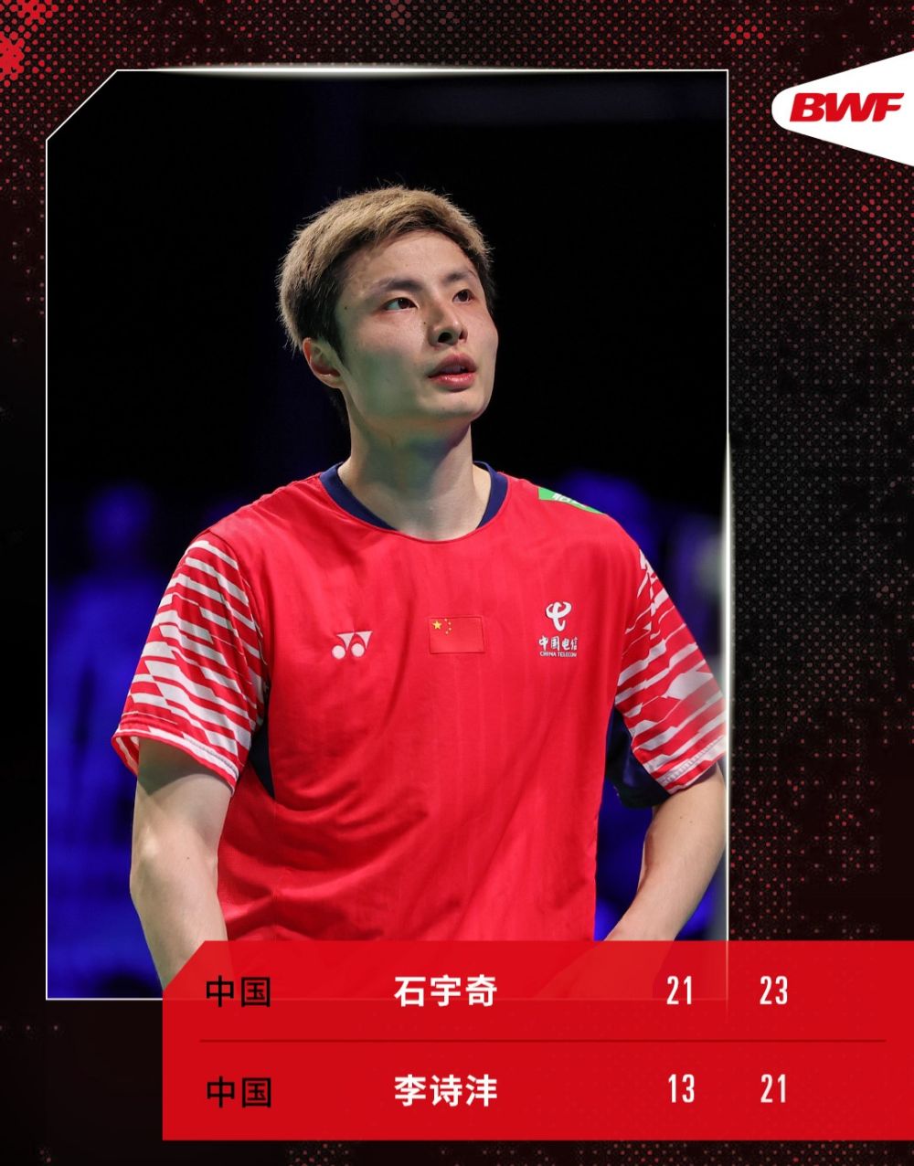 赛后他说获胜有运气成分,“对方有主动失误,而我关键分打得很果断”。至于身体状况,石宇奇表示:“我和李诗沣都有一些伤病问题,今天能在场上展现出比较高强度的对抗,还是不错的。”