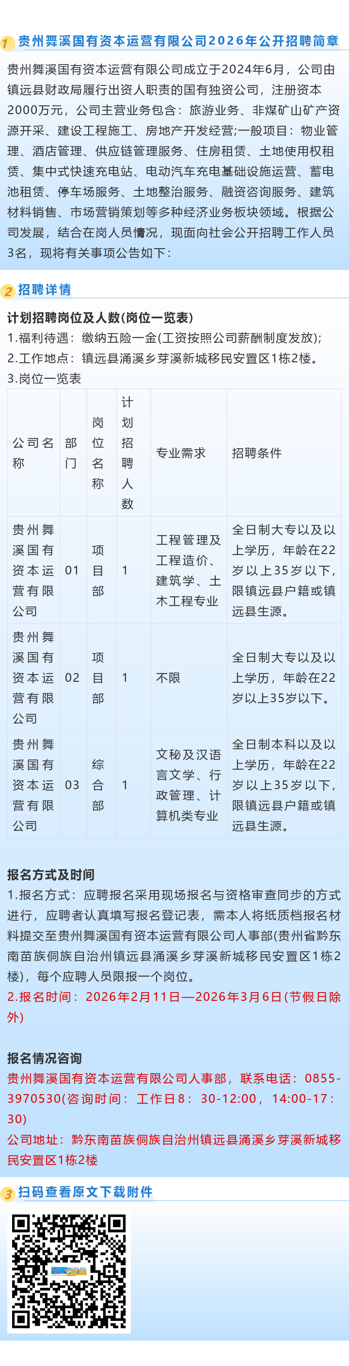 【国企】贵州舞溪国有资本运营有限公司招聘!大专起报!