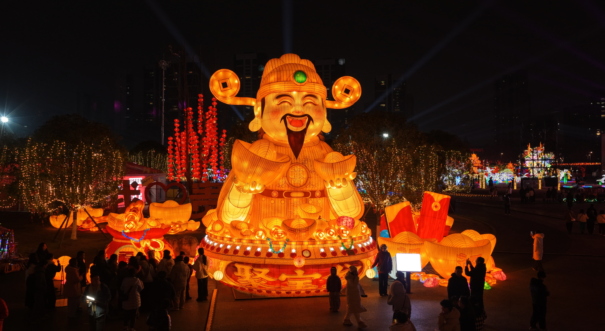 火热开市,现场还有很大的财神。初一迎财神,来这打个卡拍拍照。
