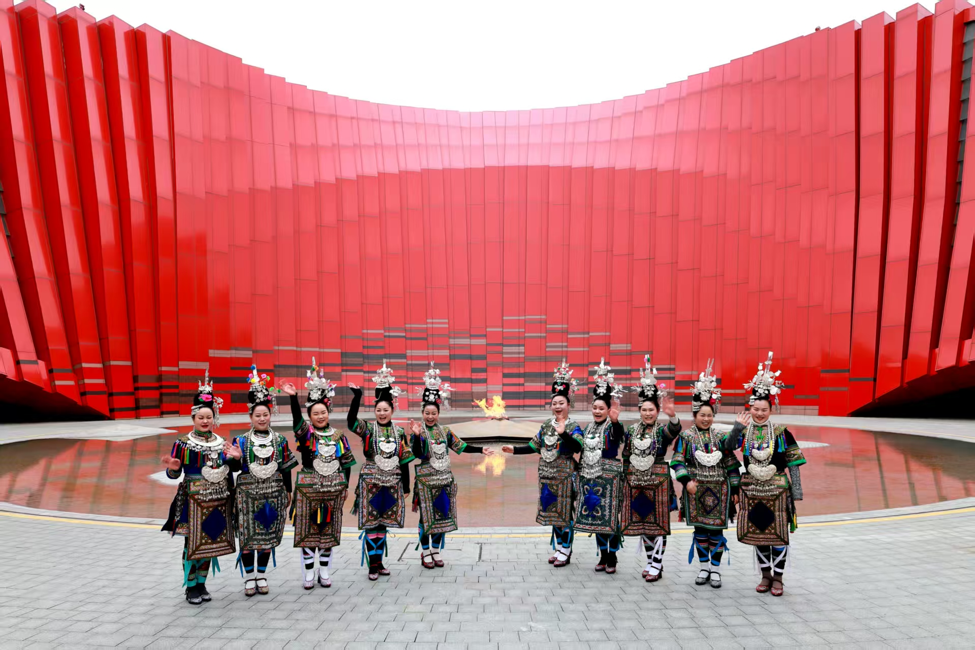 1月2日下午,身着绚丽民族服饰的黎平侗歌队在“红飘带”演唱侗族大歌《侗歌声声唱给党》等曲目。无指挥、无伴奏的多声部合唱婉转起伏,声若天籁之音,现场掌声不断,吸引众多游客驻足聆听、拍照、合影。