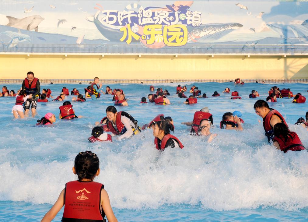 炎炎夏日,贵州省石阡县迎来四面八方以水消暑的游人。白天,他们在水上乐园游玩;夜晚,温泉泡池成为他们休闲的好去处。国家级自然保护区佛顶山下的石阡县,是著名的“中国温泉之乡”。