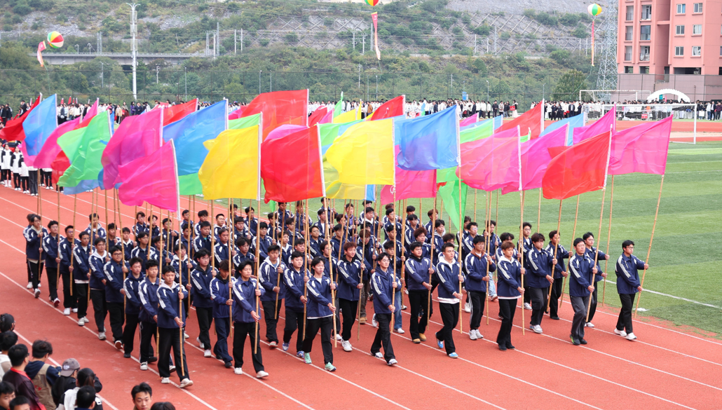 随后,仪仗方队、彩旗方队、冠军方队、裁判员方队及各学院方队依次入场,青春气息与热烈氛围扑面而来。
