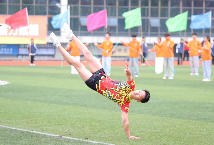 《龙腾狮跃启新程》拉开序幕,表演者身姿矫健、演绎灵动,舞出青春朝气与奋进豪情;合唱舞蹈《黄河大合唱》旋律雄浑、演绎震撼,彰显中华儿女铭记历史的坚定意志;朗诵《贵州放歌》饱含深情,诉说黔中大地沧桑巨变与蓬勃生机;《绳操律动》中,学子们动作整齐、身姿飒爽,融体育活力与韵律之美;《武道群英》一招一式刚劲有力,尽显体育强国青春风采;《青春时代》啦啦操节奏动感、姿态热情,展现学子自信昂扬面貌;《师道之光》歌舞舞姿优美、歌声动人,诠释师者立德树人的崇高精神。演出在《挺拔的香樟》歌声中落下帷幕,全体演员齐聚舞台,意蕴深长、催人奋进。