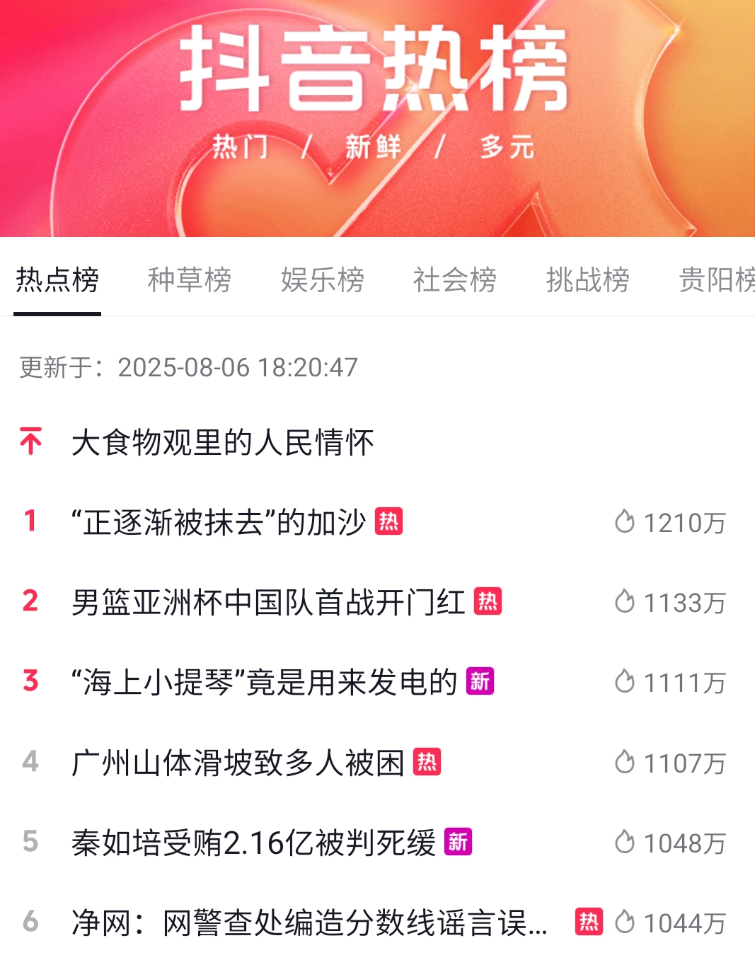 打开动静新闻客户端,刷动静听新闻。社交媒体热点打捞,洞悉社会情绪,最后来看各大热榜,明天再见!