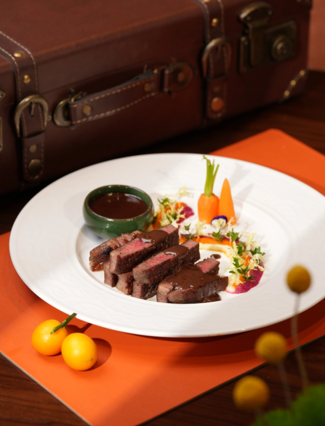 细节的把控远不止于此。当客人对酱汁产生好奇,服务生会适时上前介绍:“这款酱汁灵感取自黔南刺梨,发酵后与红酒汁融合,果酸明亮,层次醇厚。”若有人讨论牛肉熟度,经理也会自然接入:“我们选用的是‘贵州牛’,先以水果酶软化肉质纤维,再以黄油浸润,最后低温慢煮。即使您选择全熟,也能保持肉质的柔嫩多汁。”