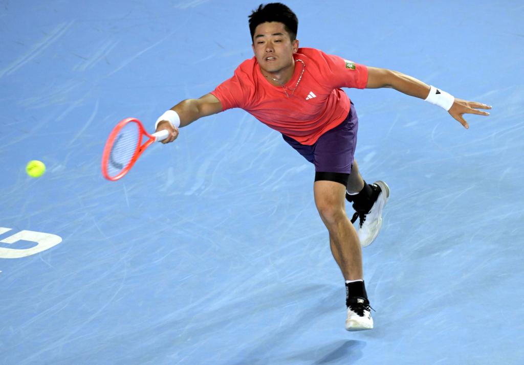 1月7日,吴易昺在比赛中回球。新华社发(卢炳辉摄)