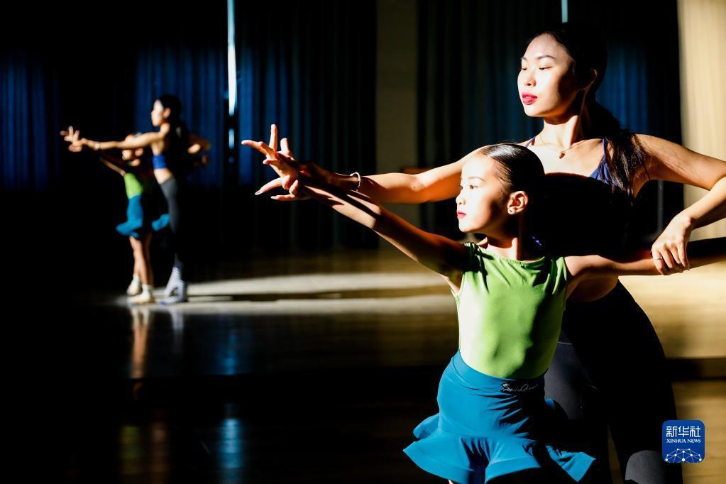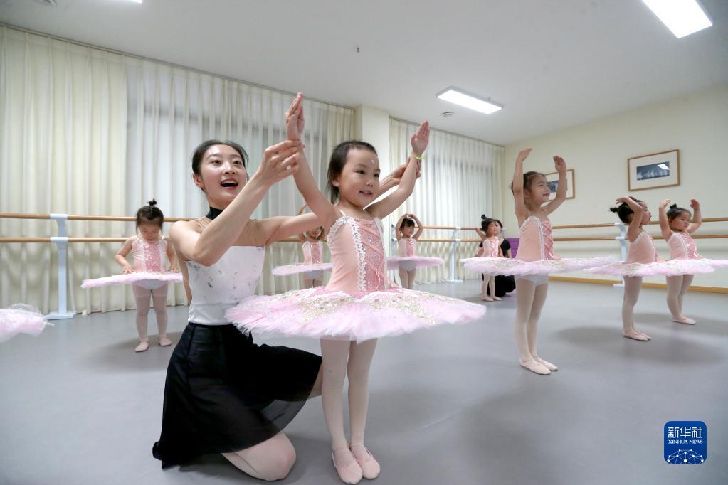 7月7日,在四川省眉山市东坡区,儿童在少年宫公益托管班学习舞蹈。新华社发(张忠苹摄)
