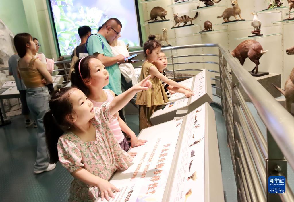 7月8日,小观众在江苏常州博物馆参观动物标本。新华社发(王启明摄)
