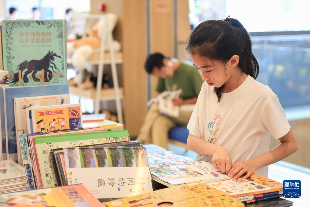 7月8日,小读者在南京一家书店内阅读。新华社发(苏阳摄)