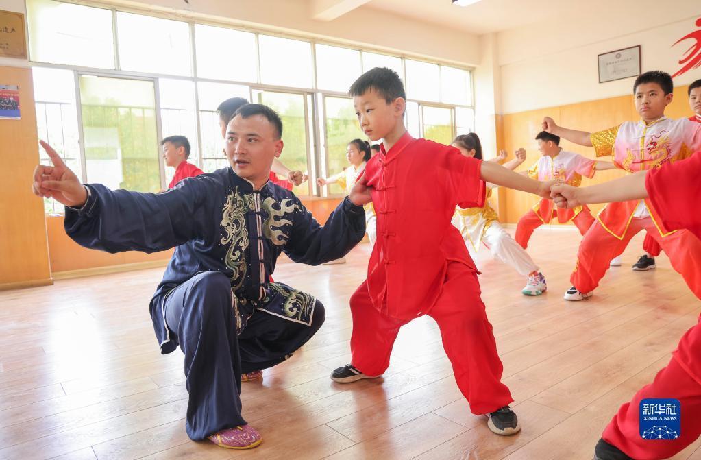7月8日,在山东省临沂市兰山区一家武术馆,武术老师指导学员练习拳法动作。新华社发(许传宝摄)