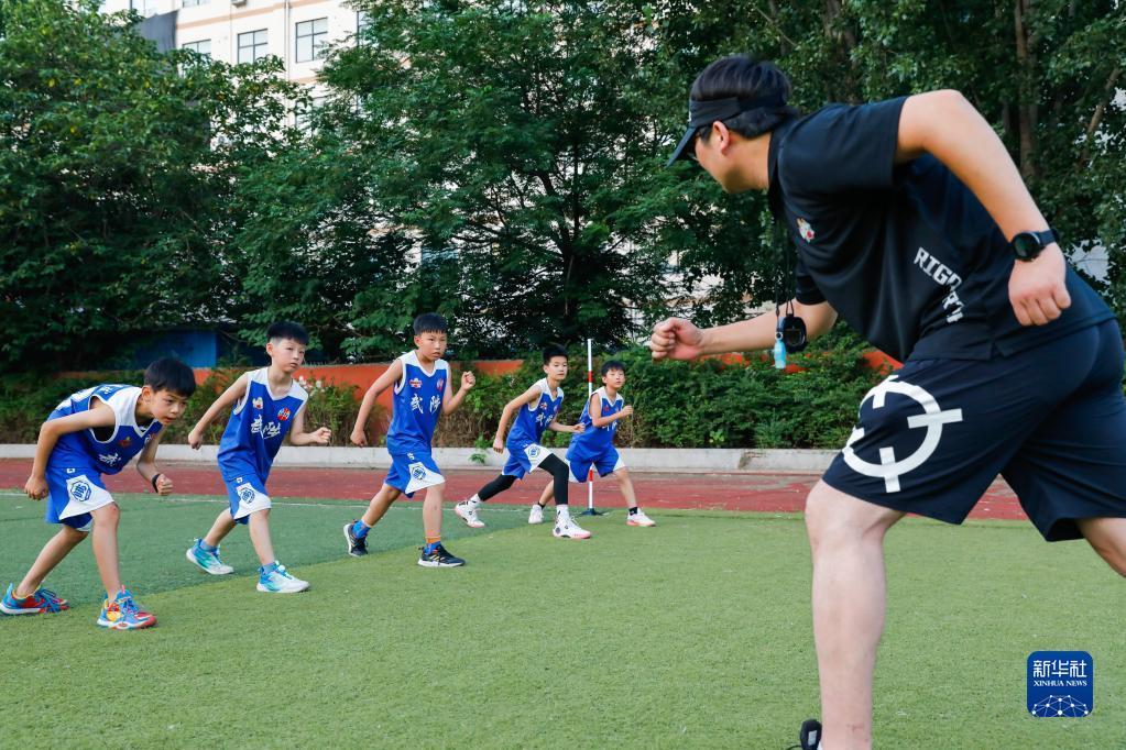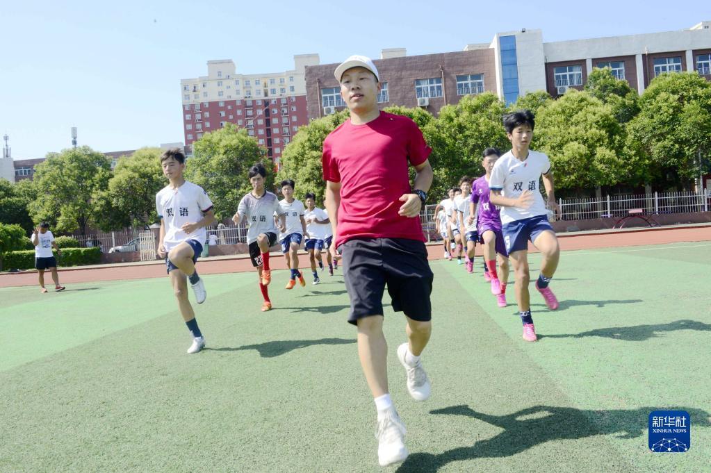 7月7日,在河南省焦作市武陟县一家体育培训机构,教练指导学生练习跑步。新华社发(王琳锋摄)