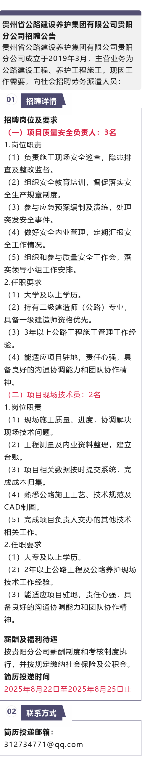 贵州省公路建设养护集团有限公司贵阳分公司招聘!大专起报!