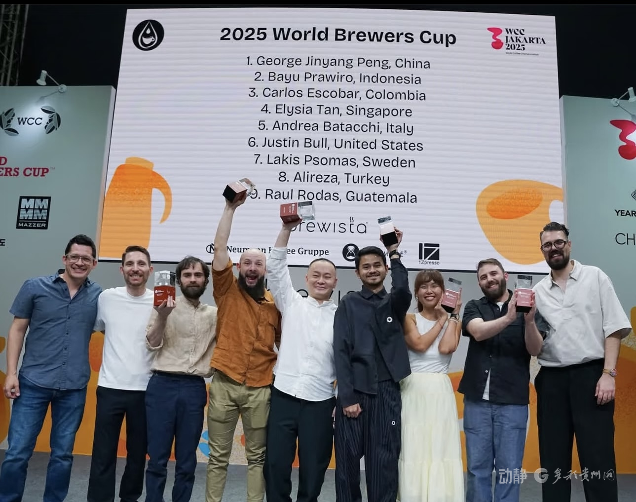 2025年,彭近洋站上了世界咖啡冲煮大赛的最高领奖台。聚光灯打下来,他手里握着那杯刚刚冲煮完成的咖啡——水温恰当,香气浓郁,就像他练习了无数遍的那样。