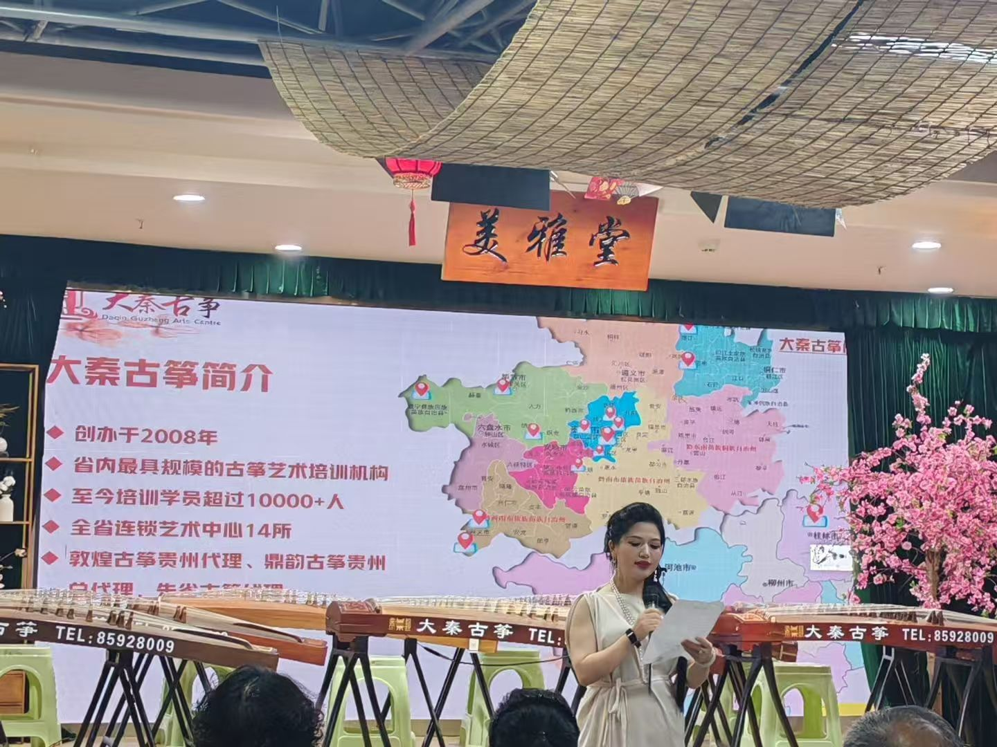 演出前的分享与致辞,让这场音乐会更添温情。乐团学员刘桂子上台讲述与古筝、与大秦古筝的结缘故事,感念教师团队的专业指导与耐心陪伴,尤其是在学习过程中,老师们用鼓励化解成年人的畏难情绪,用专业铺就习筝阶梯,让“筝乐梦想”得以生根绽放;大秦古筝创办人、教学总监陈玉莲校长则在致辞中,特别感谢贵阳银行的大力支持——不仅助力音乐会顺利举办,更精心为现场观众准备伴手礼,同时向信任机构的学员与家长致以谢意。她强调“音乐从来不论早晚,热爱可抵岁月长”,并指出古筝于成年人而言,不仅是一门乐器,更是繁忙生活中寻觅宁静、与自我对话的温柔方式。