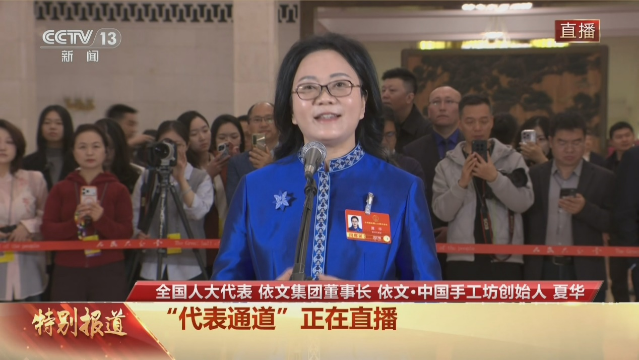 春日京城,玉兰初绽。在人民大会堂举行的十四届全国人大四次会议第三场“代表通道”上,来自贵州代表团的全国人大代表、依文集团董事长夏华提及一条“赤羽纹霞”礼服裙,引起了大家关注。