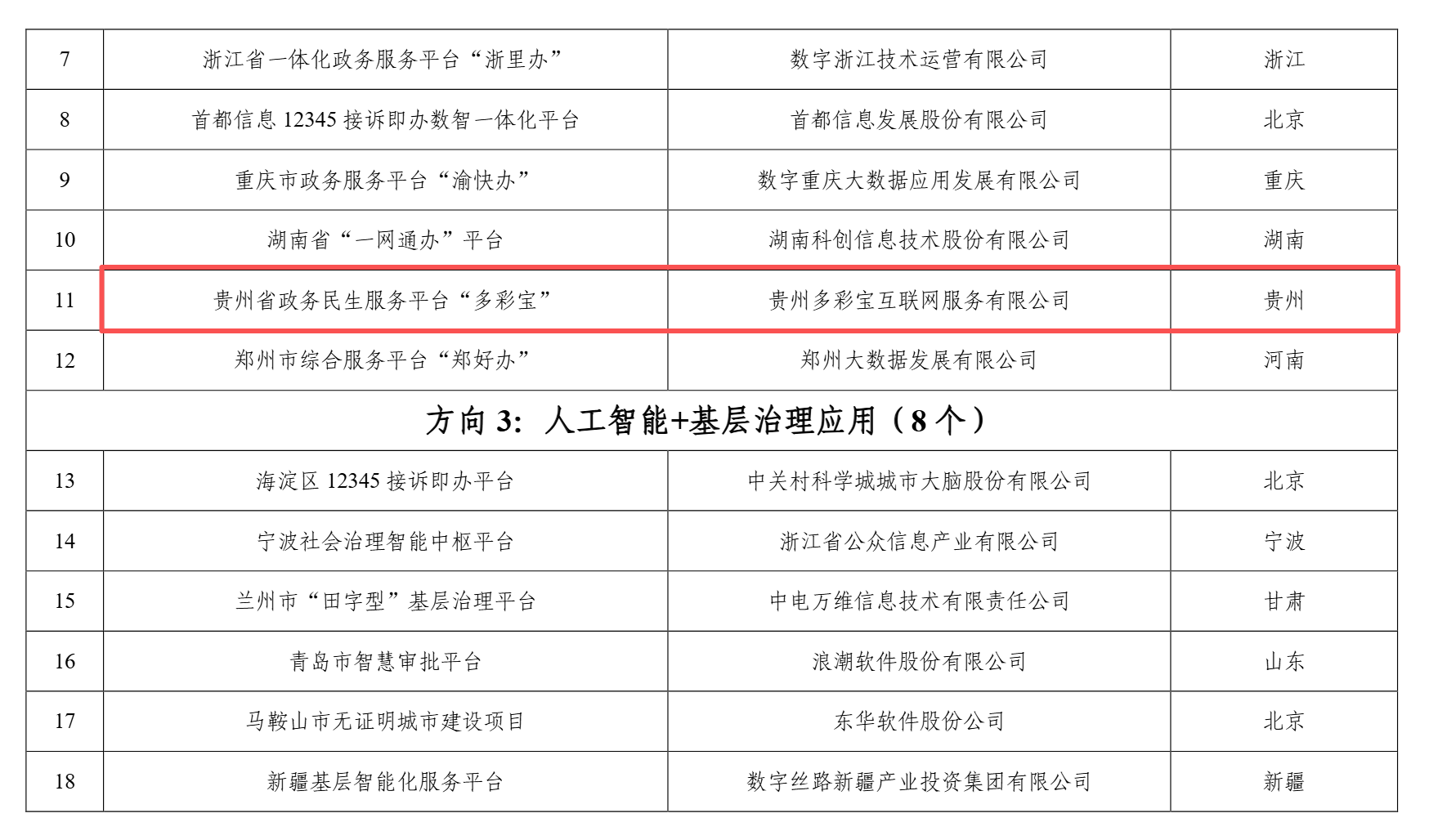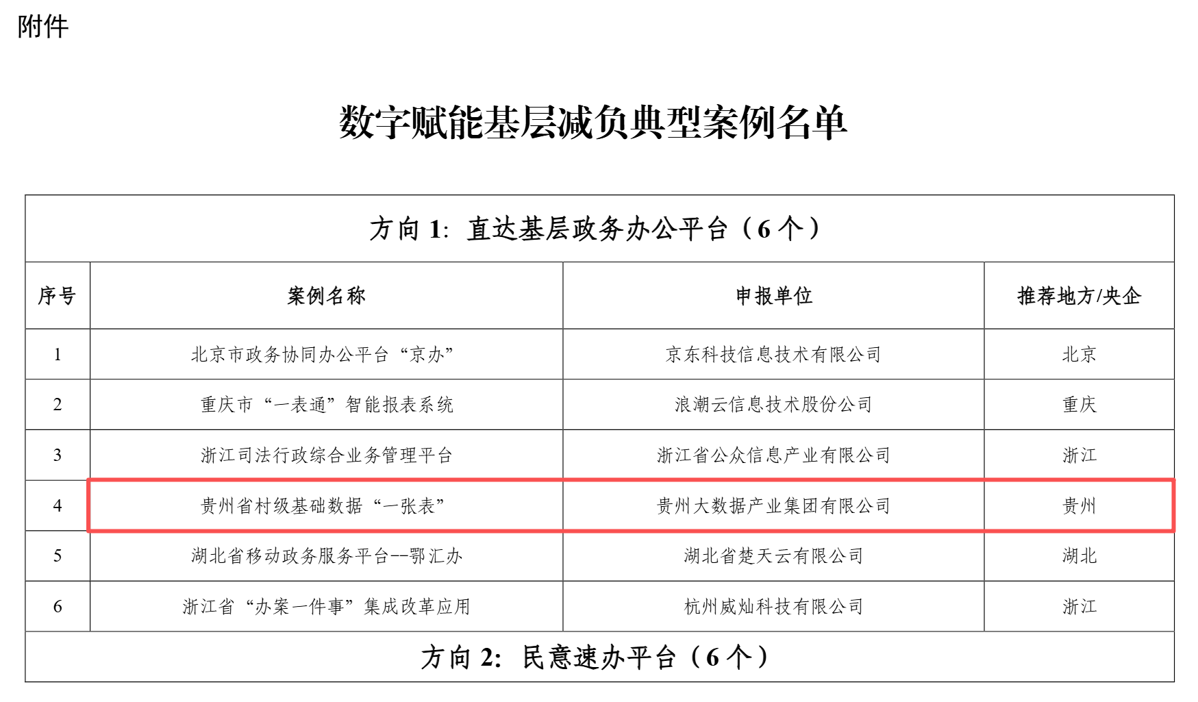 其中,贵州省村级基础数据“一张表”和贵州省政务民生服务平台“多彩宝”两个案例上榜