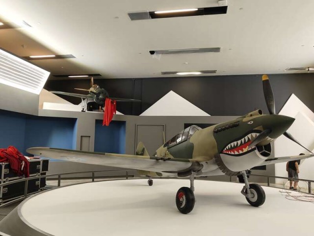 策展团队介绍,本次“国际友人与中国抗战——纪念中国人民抗日战争暨世界反法西斯战争胜利80周年”专题展的策展中使用了大量多媒体技术,打造沉浸式体验,如“报道·发声”单元中,展览设置了破损的街巷墙壁和弹孔、弹痕,使参观者如同战地记者身临其境,直面战争惨烈;“军事·战斗”单元中,布置了1:2制作的参与过战斗的飞机模型伊-16与P40,将场景复原驼峰航线、苏联援华航线。