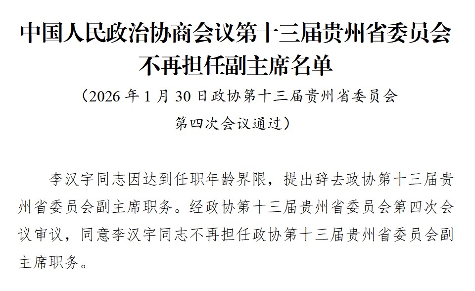 会议表决同意李汉宇不再担任政协第十三届贵州省委员会副主席职务。