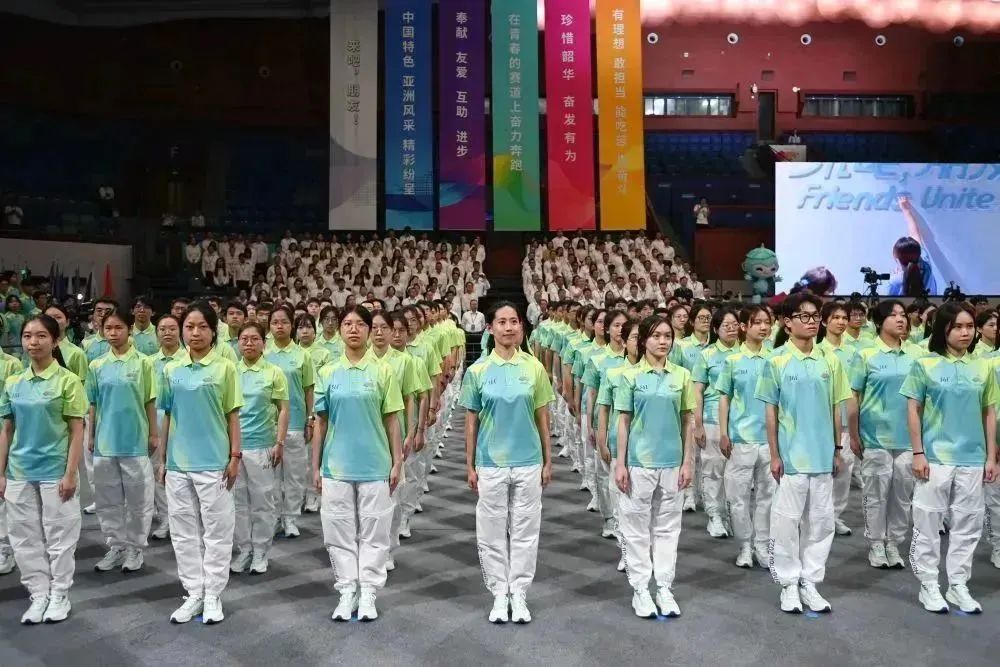 8月24日,在杭州亚运会倒计时30天之际,杭州亚运会、亚残运会赛会志愿者出征仪式在浙江大学紫金港校区体育馆举行。1800名赛会志愿者代表在现场向全世界发出邀约——“来吧,朋友!”