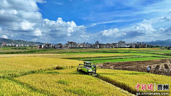 农机收割。