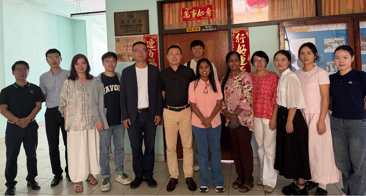 访问凯拉尼亚大学的行程别具意义。代表团不仅走进了该校僧伽罗语专业的留学生课堂,更专程拜访了设立于此的斯里兰卡首家孔子学院。在与来自全国各地、正在学习斯里兰卡本土语言文化的留学生交流时,代表团成员详细介绍了中国-斯里兰卡茶叶绿色防控技术“一带一路”联合实验室的使命愿景,强调联合实验室不仅需要科学家,更需要懂语言、通文化、有情怀的青年使者。代表团诚挚邀请同学们用自己的语言优势和文化理解力,为中斯科技合作搭建沟通桥梁,为“一带一路”建设贡献青春力量。在场留学生深受鼓舞,纷纷表示愿意在学成之后积极参与中斯两国的教育与科技合作事业。凯拉尼亚大学孔子学院中方吴院长对代表团的到访给予高度评价,认为这种将科技合作与人文交流相结合的创新模式,为孔子学院建设开辟了新思路。在随后的深入交流中,代表团详细了解了孔院在师资队伍建设、课程体系设计、文化活动开展等方面的成功经验与面临挑战,为贵州大学即将与佩拉德尼亚大学共建孔子学院提供了宝贵的实践参考。孔院教学团队表示,重庆师范大学与凯拉尼亚大学合作建立的孔子学院已成为斯里兰卡汉语教学与中国文化传播的重要阵地,期待贵州大学能够充分借鉴这一成功模式,结合自身在农业科技领域的特色优势,探索打造一所“科技+人文”双轮驱动、具有鲜明学科特色的新型孔子学院。