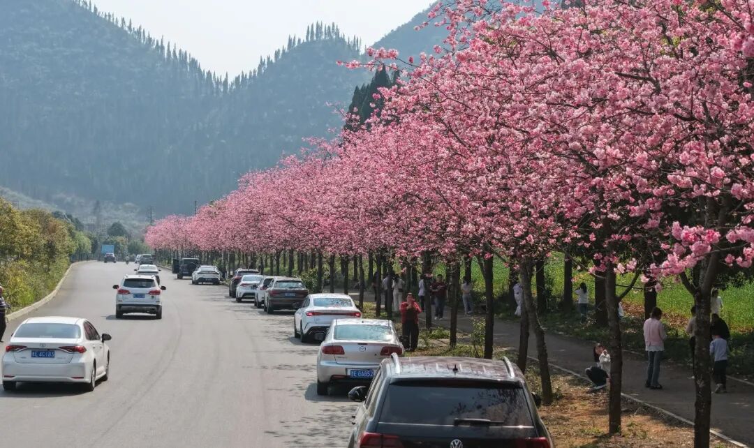 黔西南以花为媒、以景为链,把春日盛景转化为长效产业动能,走出一条“赏花+”的繁花经济路。依托北纬25°黄金气候与喀斯特地貌,万峰林油菜花海、郑屯樱花漫道、安龙樱桃花、贞丰李花、七舍杜鹃花次第绽放,形成 “四季有花、处处是景” 的全域赏花格局。“花开迎客、花谢收果、四季留客”,花期引爆客流与民宿餐饮,果期带动采摘与电商直播,常年以山地赛事、布依民俗、康养旅居拉长消费链条。从“一季赏花”到“全年增收”,繁花经济正成为黔西南乡村振兴、旅游提质、群众共富的重要引擎。(文/黔西南融媒记者 韦夏夏)