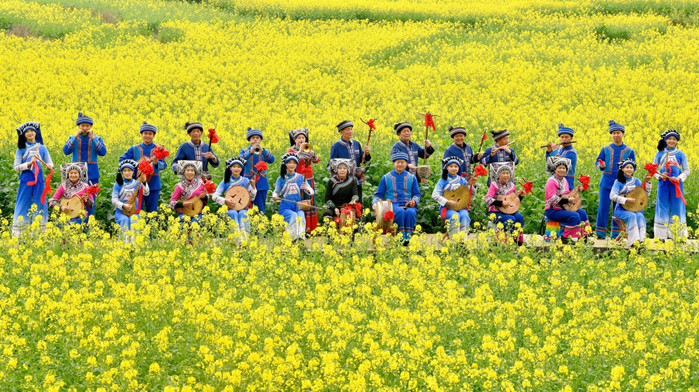花海中的八音坐唱 图/张德厚