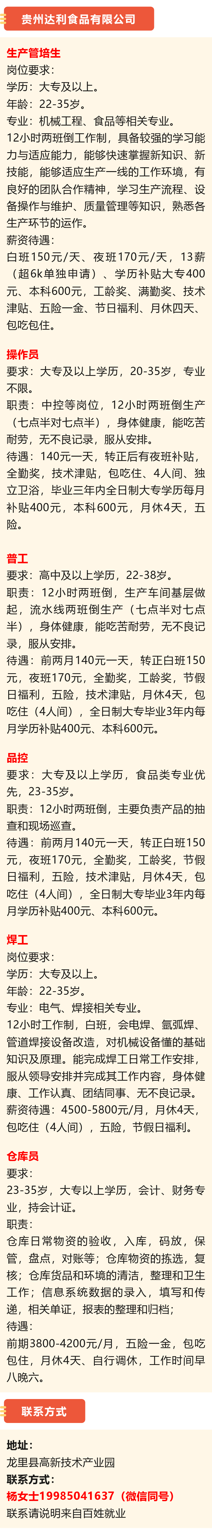 【知名企业】贵州达利食品有限公司招聘仓库员、生产管培生等岗位!五险一金!包吃包住!