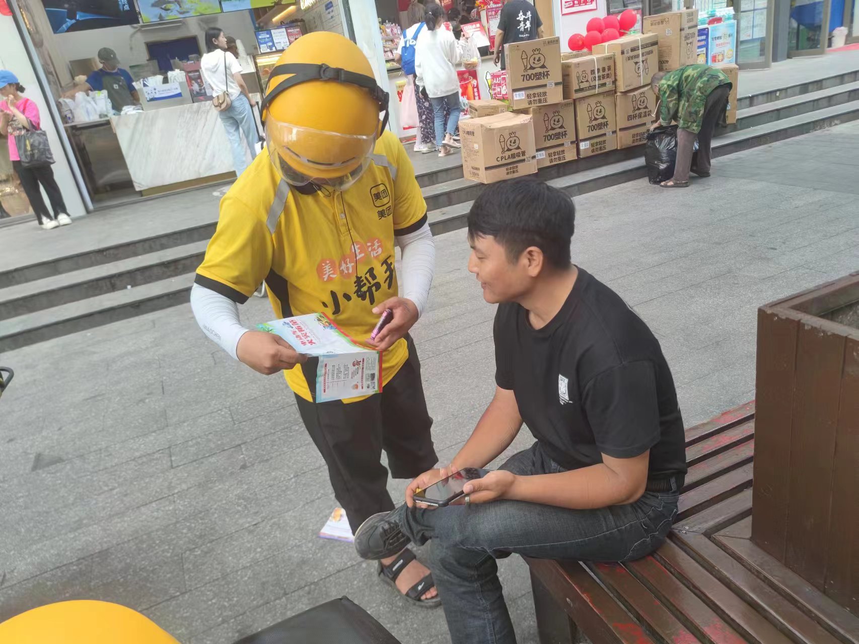 美团外卖小哥变身“消防骑士”,充分发挥外卖行业“点多面广、贴近群众”的特点,在送“放心餐”的同时把消防安全送进大街小巷。外卖员在送餐过程中,对顾客开展面对面的消防知识宣传,提醒顾客关注消防,随餐发放消防宣传资料,让订餐用户“足不出户学消防”,营造浓厚的消防安全宣传氛围,期间共发放宣传资料500余份。