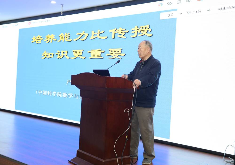 报告会上,严加安院士以《培养能力比传授知识更重要》为主题,围绕大学教育的核心议题展开分享,从大学教育的目标出发,阐释了能力培养在人才培育中的核心地位。他直言,大学教育的本质并非单纯的知识灌输,而是以知识为载体,培育学生终身学习、独立思考与解决实际问题的能力,这才是学生适应社会发展的根本。