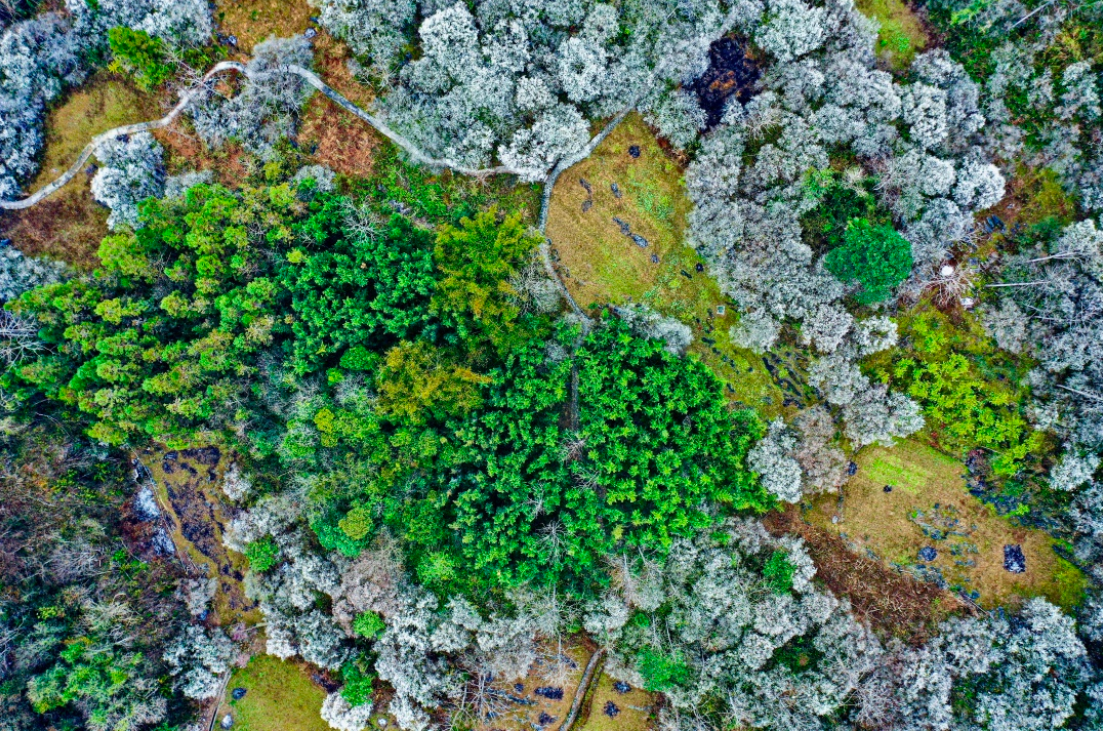 被誉为“中国野生梅之乡”的荔波万亩梅原,是全国最大的集中连片野生梅林,两万多亩梅树扎根于世界自然遗产地核心区,与茂兰喀斯特地貌相映成趣。这里的梅树多为百年古株,微风过处,暗香浮动,宛如水墨长卷在眼前铺展。