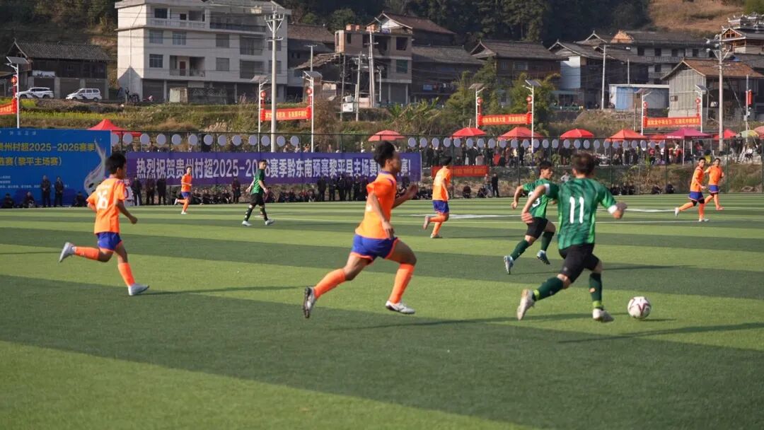 1月11日,贵州乡村足球超级联赛(贵州村超 2025-2026赛季)黔东南赛区预选赛(黎平主场赛)第一场比赛在黎平县尚重镇盖宝侗寨举行,此次活动主题为“村超燃动侗乡 村舞携手奋进”。