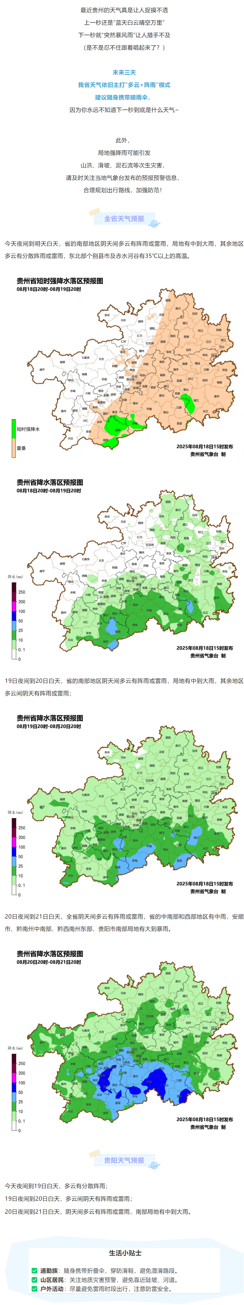 贵州未来主打“多云+阵雨”模式,局地暴雨,需注意防范!