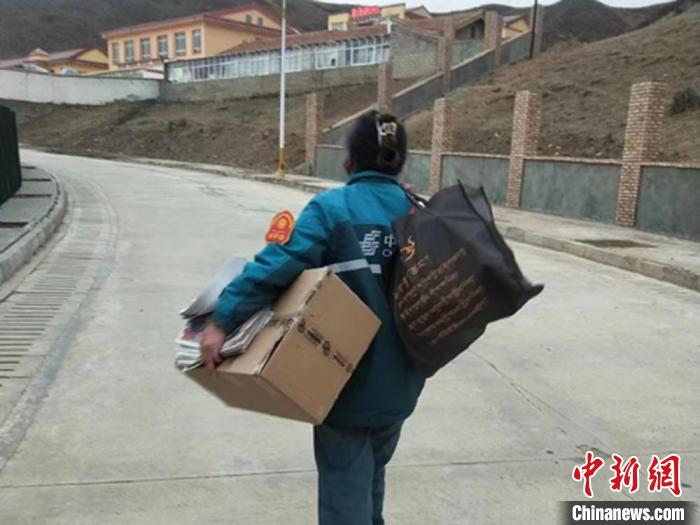 图为麦桃吉送快递途中。(资料图) 中国邮政集团有限公司甘肃省玛曲县分公司供图