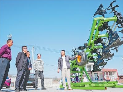 图为甘河子镇农机展销会上,技术人员围绕农机操作、设备保养为农户细致讲解。李仁锡摄(影像中国)