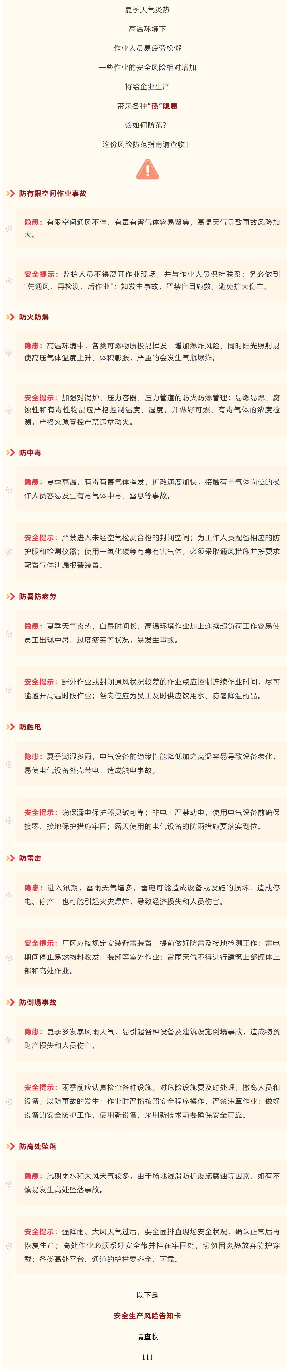 夏季高温,这份高温安全生产提示请趁“热”收下