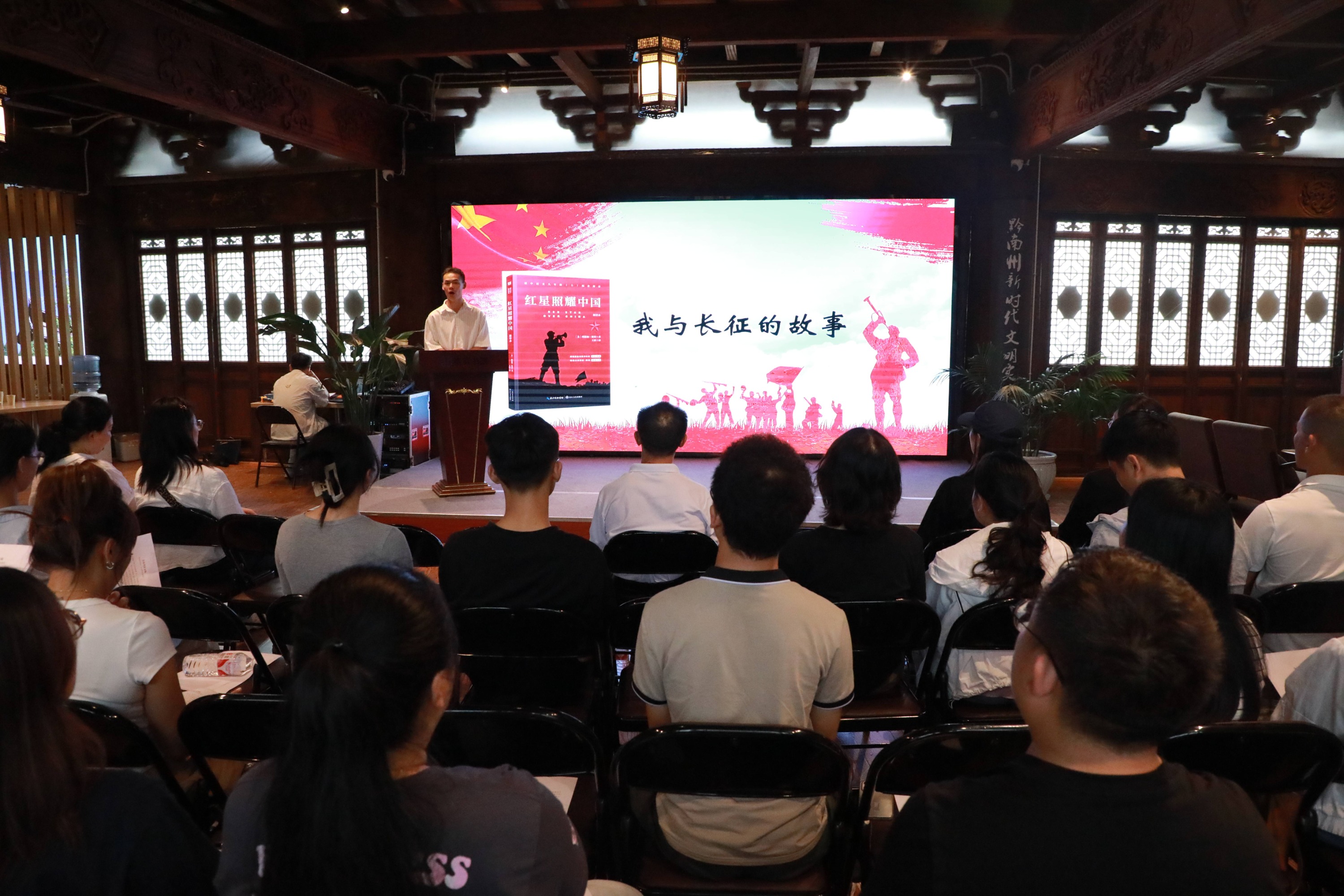 活动的最高潮,是全体参与者在主持人的带领下,共同庄重诵读《图说长征》的经典篇章。朗朗书声在书院回荡,一字一句,都满载着对革命先辈的无限崇敬。通过书籍漂流与阅读分享的模式,长征的故事、精神和信念,像种子一样在参与者心中“漂流”、生根。