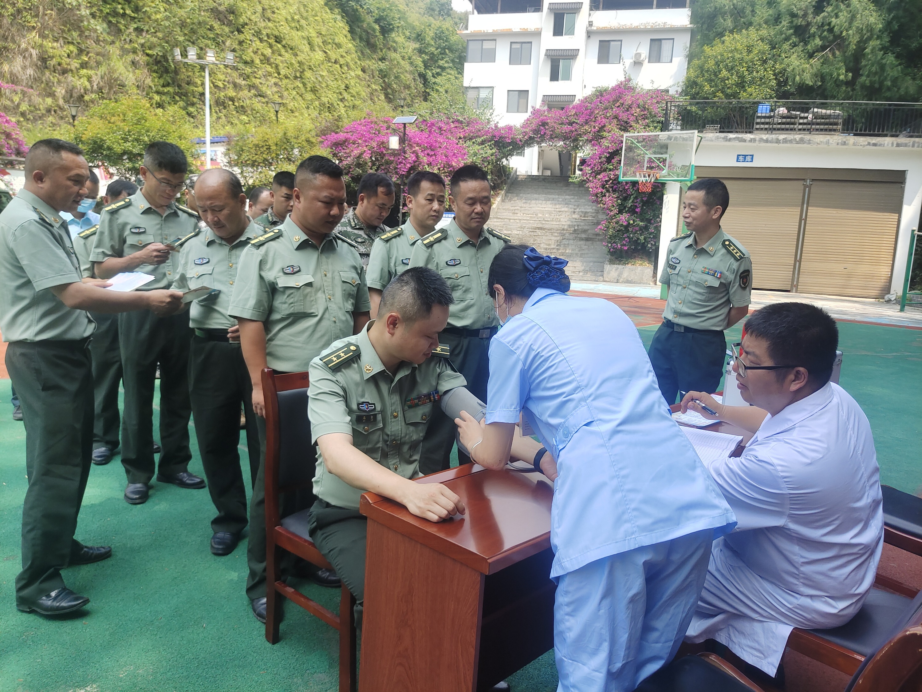 在活动现场,医护人员为部队官兵们进行了血压测量,详细询问了他们的身体情况,就常见病、季节性多发病和训练伤等方面的问题进行了细致的讲解,对官兵们的寻医问诊提出了有针对性指导和建议,耐心地为他们答疑解惑。