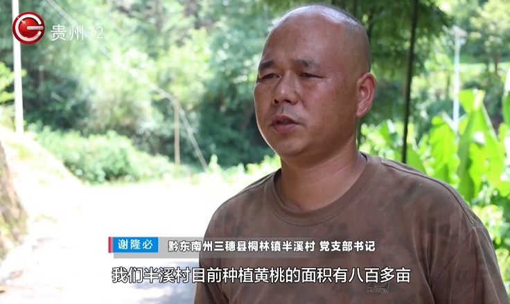 黔东南州三穗县桐林镇半溪村党支部书记谢隆必:我们半溪村目前种植黄桃的面积有八百多亩,现在也是上市的时候,今年产量大概在三十万斤,到目前为止已经销售了将近十几万斤。现在我们正通过东西部协作消费帮扶,打算把黄桃送到佛山去,接下来我们将继续拓展销售渠道,把老百姓的桃子销出去,确保老百姓能够增收。