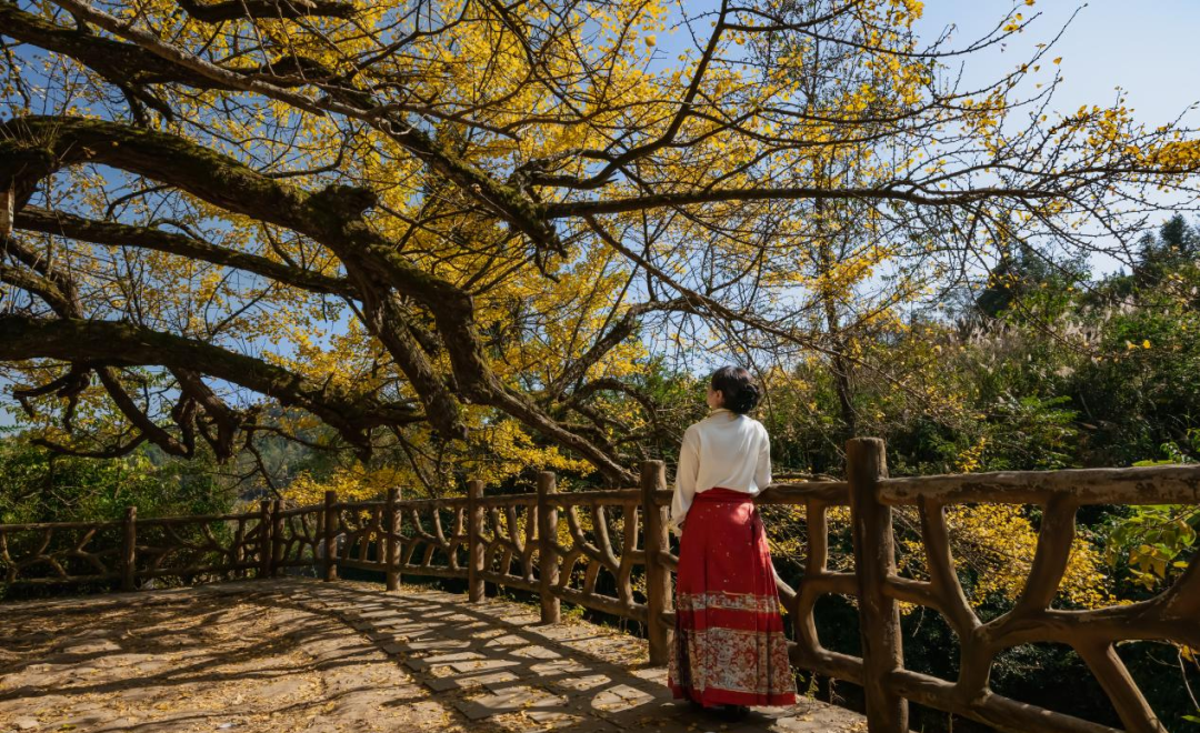 在时光的长河中,一雌一雄的两株银杏宛如两位沉默的智者 ,相互依存,见证着千年的沧桑变幻。雄株位于雌株上方100余米位置,似如一位英勇的绅士保护着雌株,为雌株创造绝佳授粉条件。每年雄株都会先于雌株一个月进入观赏期,大家可以先欣赏完雄株再去欣赏雌株。