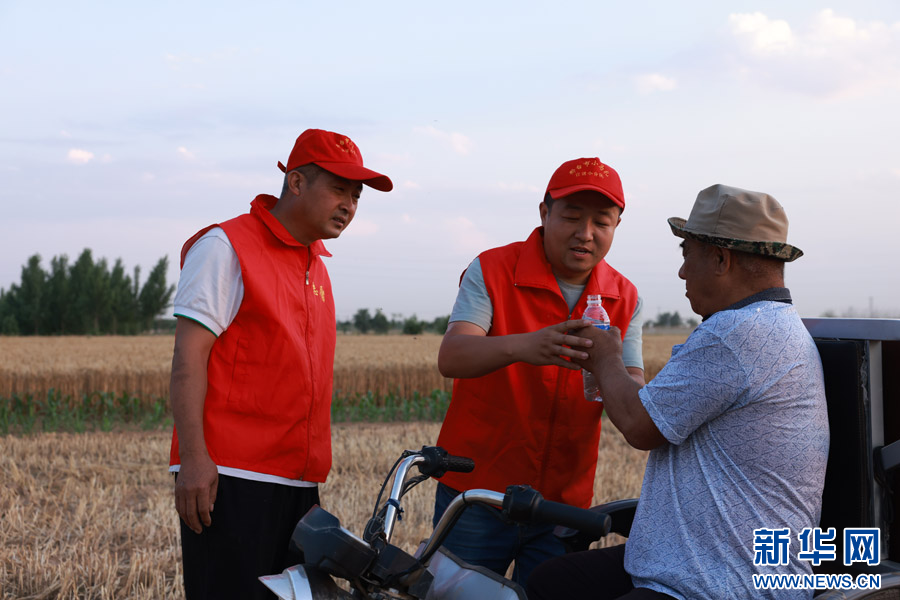 新河县西流乡“三夏”志愿者服务队穿梭在田间地头做好后勤保障工作。新华网发 李世强摄