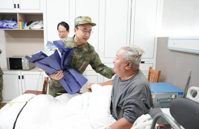 在荣军康复科,新桥医院专家组一行亲切看望慰问了在院集中供养的荣誉军人,与老人们亲切交谈,详细询问他们的日常生活与身体健康状况。再三叮嘱他们要安心休养、保重身体,并衷心感谢他们为国防事业和社会发展所做出的贡献。