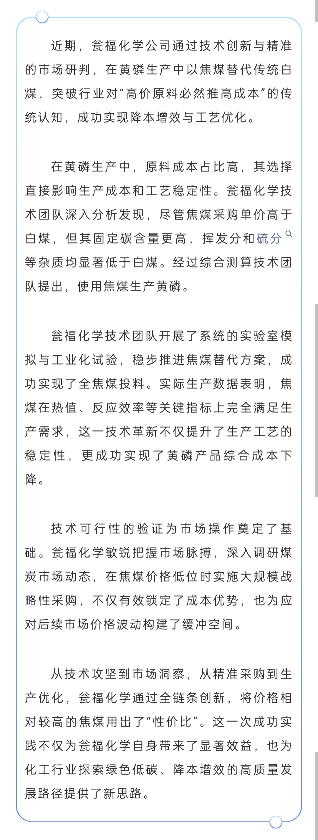 焦煤用出“性价比” 黄磷降本有新招