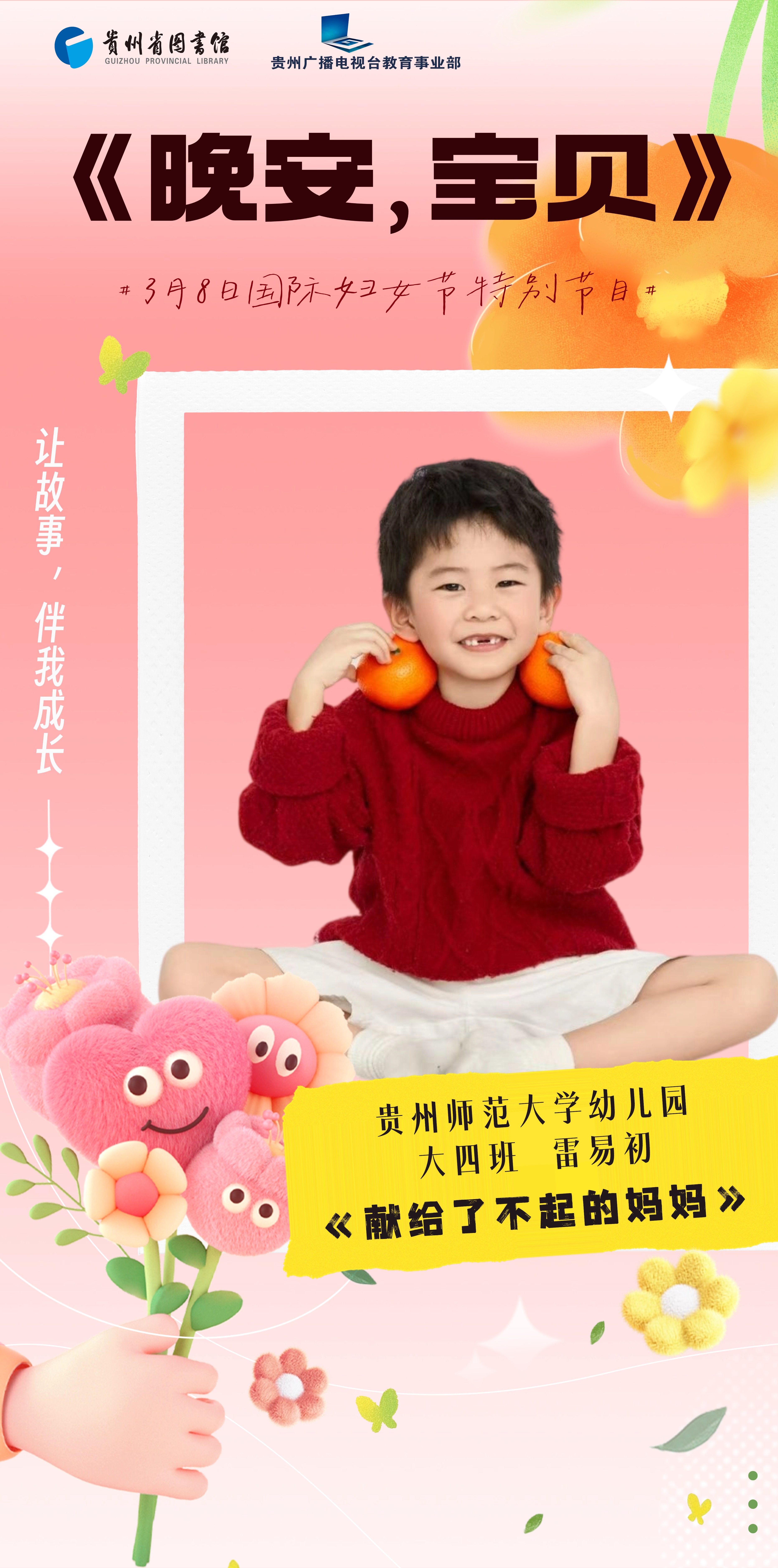 (5)每季活动最后,参加《晚安,宝贝》“小小阅读推荐官”聘书颁发仪式,由贵州省图书馆、贵州广播电视台教育事业部(GTV-6)联合颁发聘书,将有机会参与贵州广播电视台线下阅读公益活动,获得更多展示机会和荣誉。