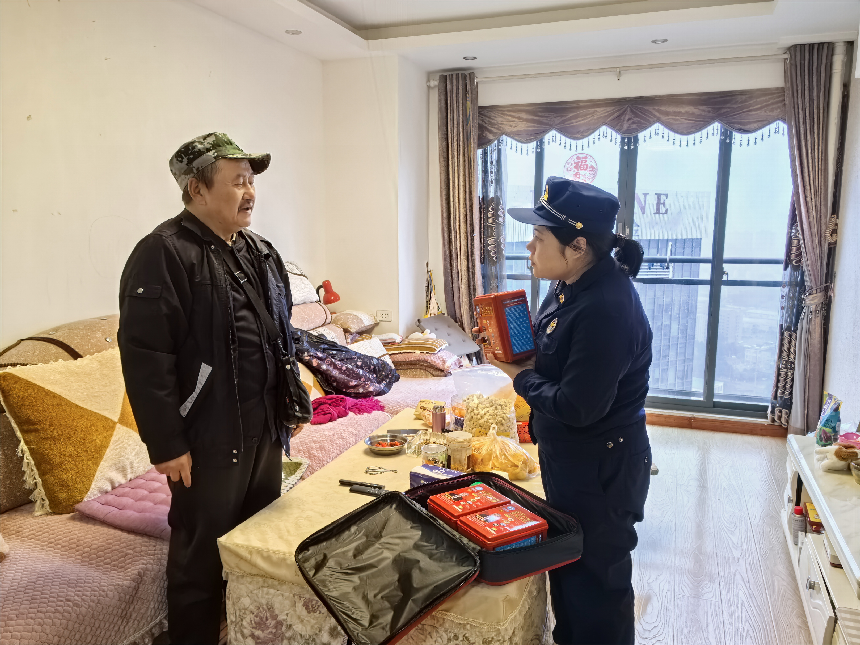 消防宣传员入户检查常见家庭隐患,重点对厨房、阳台等隐患集中区域,以及安全出口是否存在杂物堆放、电线是否乱拉乱接、燃气灶具是否符合规范、电器取暖设备是否安全使用等情况进行排查,并指导居民进行整改。现场宣传员还向居民发放消防应急包和消防安全手册,普及如何正确报警、如何正确使用消防器材、如何规范使用电动自行车等消防安全知识。