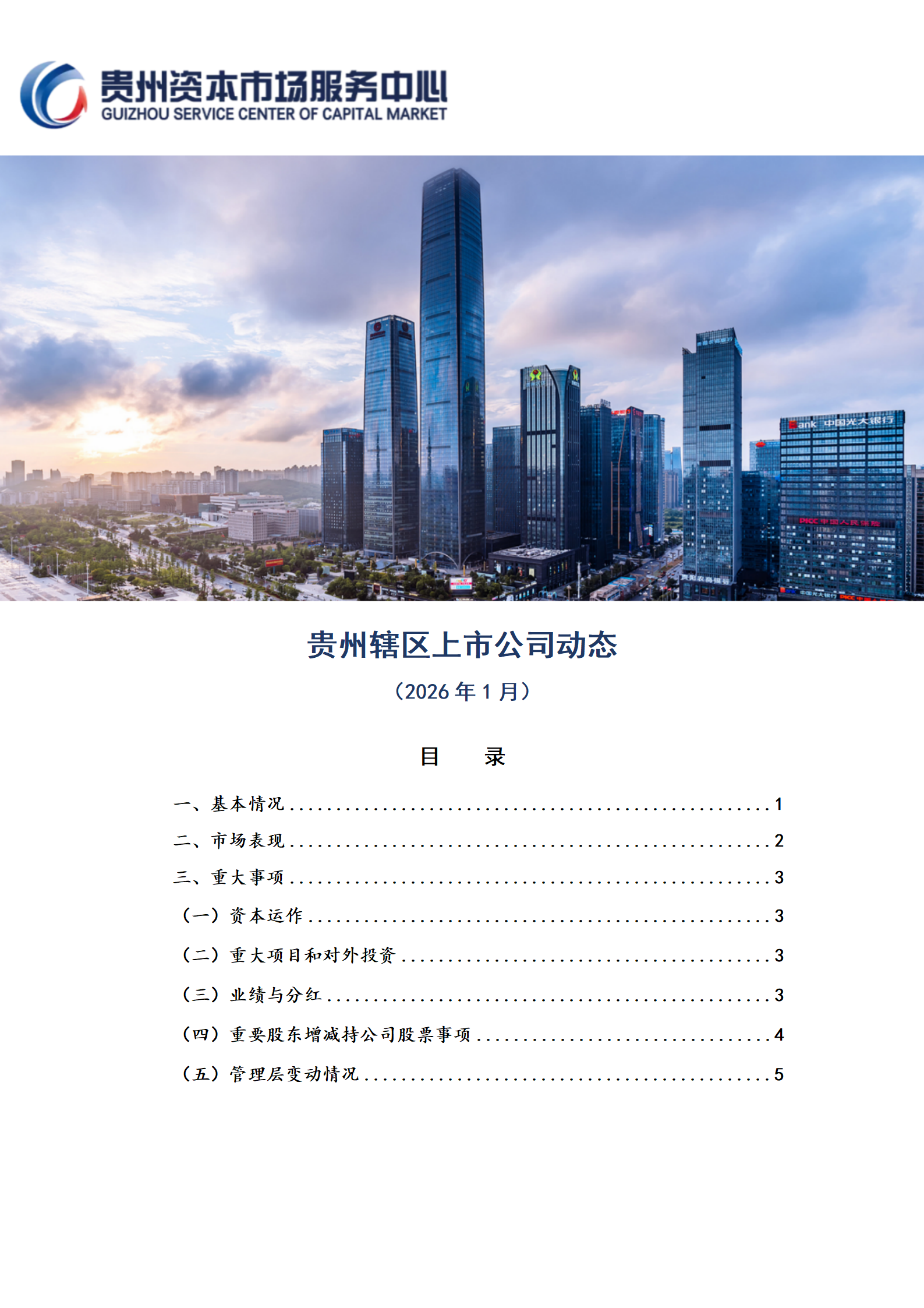 黔证资讯丨贵州资本市场月报:贵州辖区上市公司动态(2026年1月)