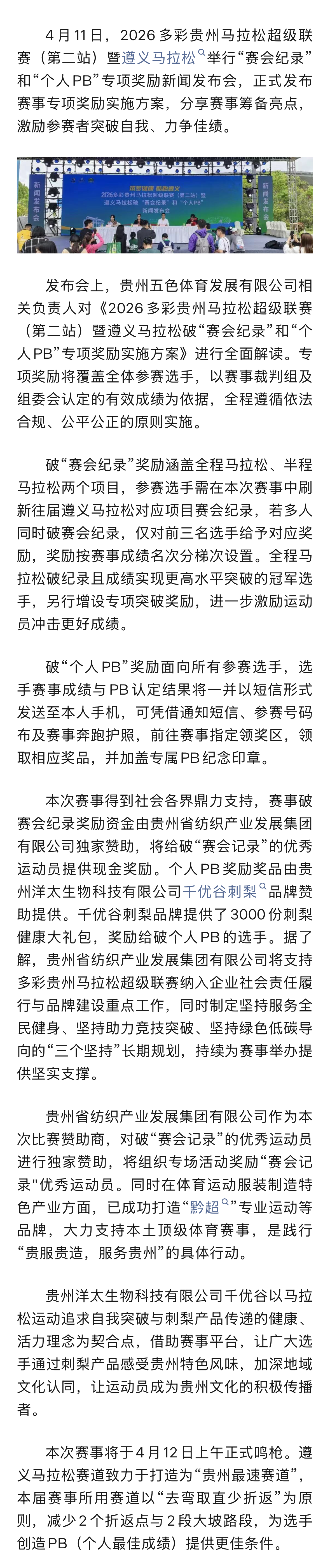 遵义马拉松~最速赛道,福利来啦!破赛会记录、个人PB,多重好礼等你拿|2026年多彩贵州马拉松超级联赛(第二站)