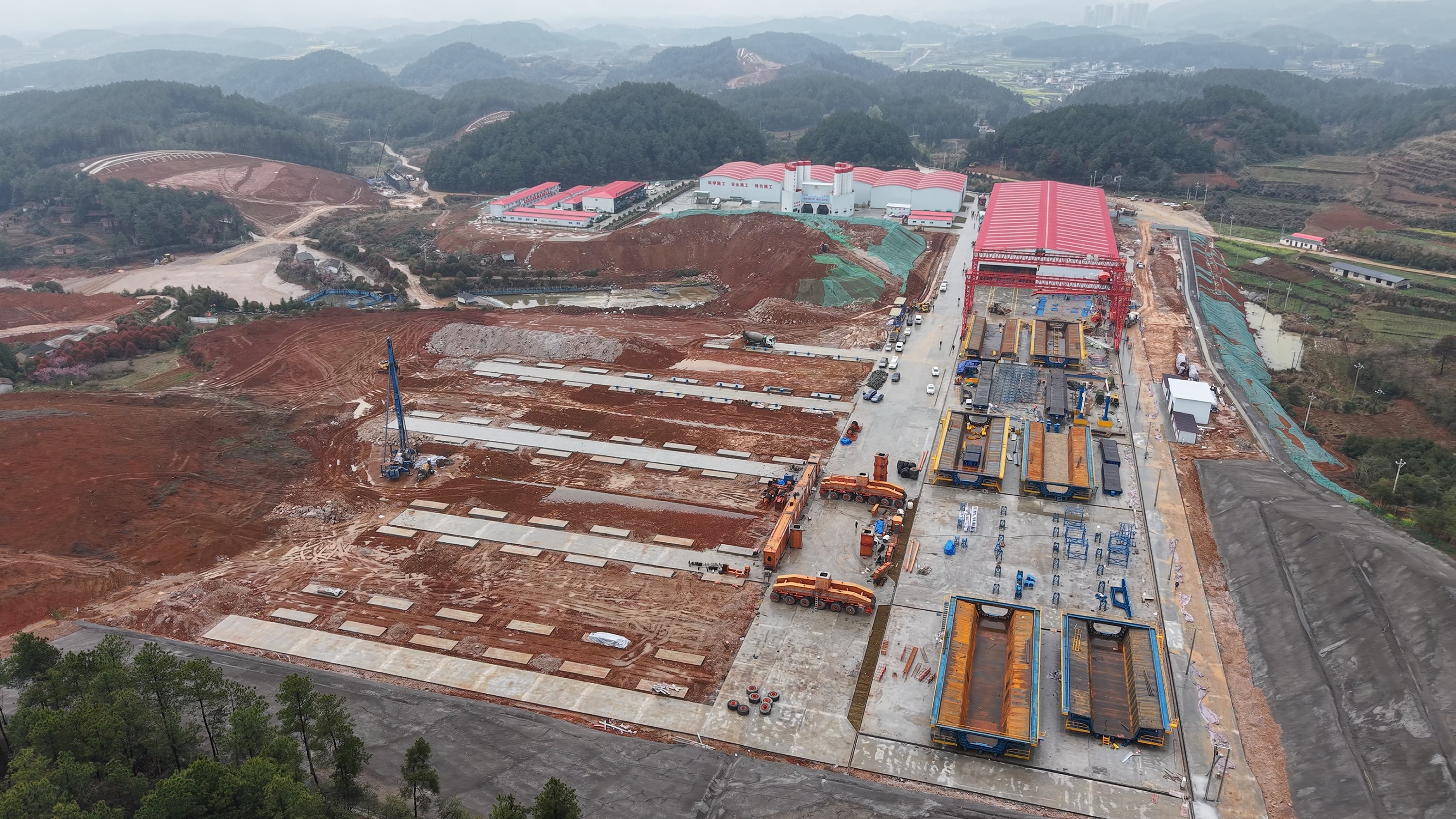 据了解,铜仁制梁场规划占地面积229亩,科学划分办公生活区、拌合区、钢筋加工区、制梁区、存梁区等全功能区块,配置全品类智能建造设备,覆盖钢筋加工、模板拼装、混凝土灌注、静载试验等全过程,全方位保障制梁场标准化、规范化生产。