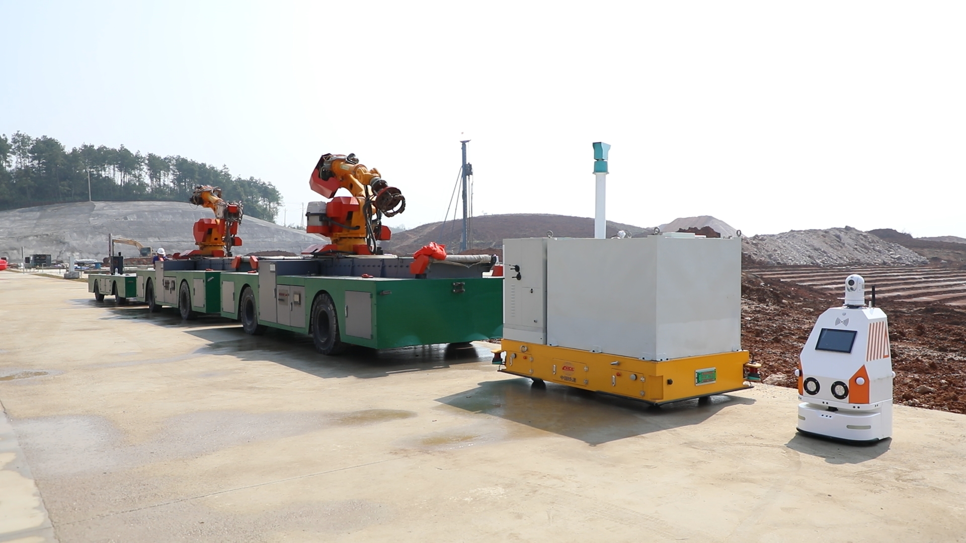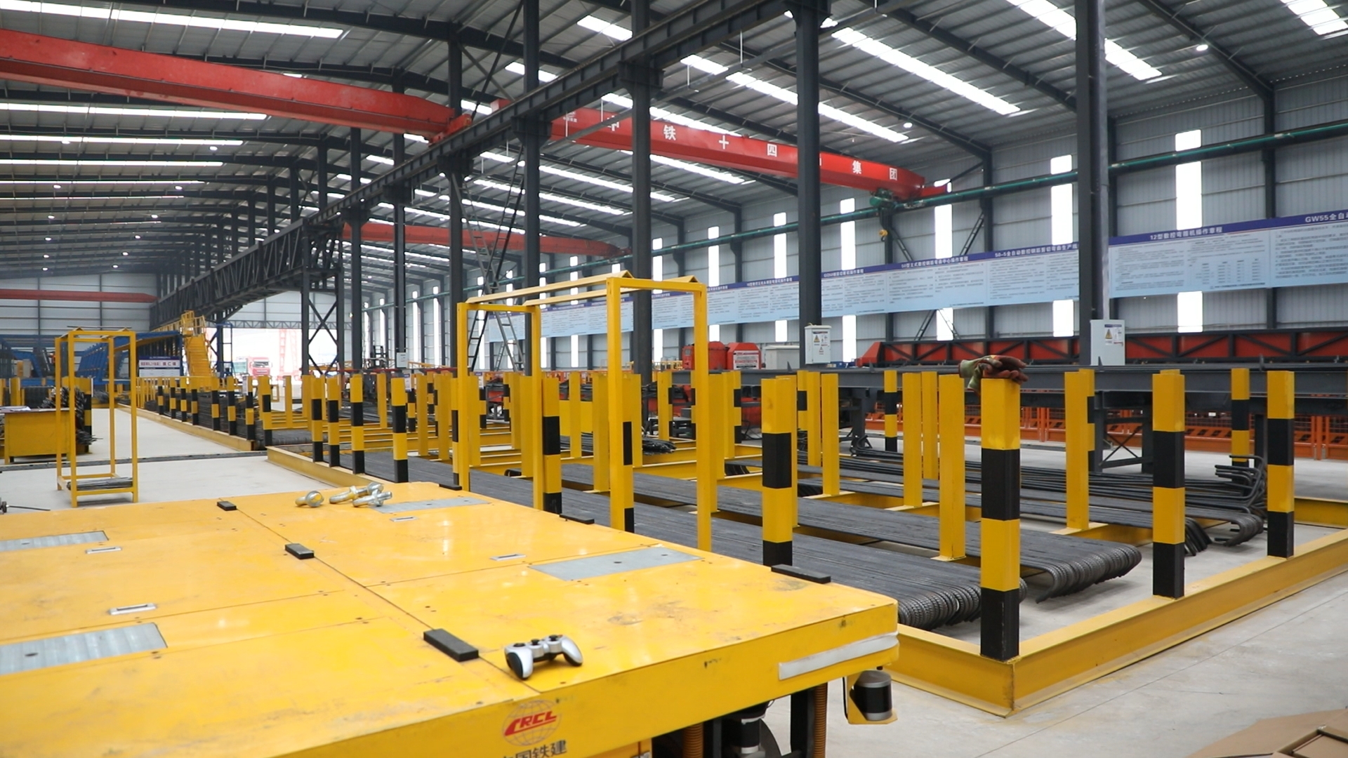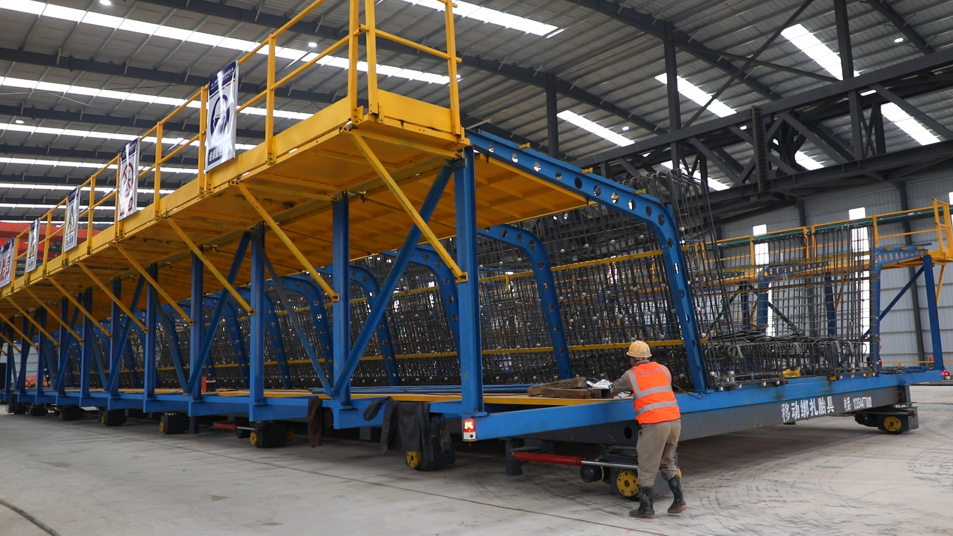 在现场,铜吉铁路铜仁制梁场负责人杨明远告诉记者:“铜仁制梁场是目前贵州省在建的最大制梁场,智能化程度最高,梁场经过前期策划,投入了一批智能建造设备,包括移动式智能绑扎胎架、钢筋运输AGV小车、端模安拆AGV小车、以及喷淋养护机器人、智能巡检机器人、封端一体化台车等。”