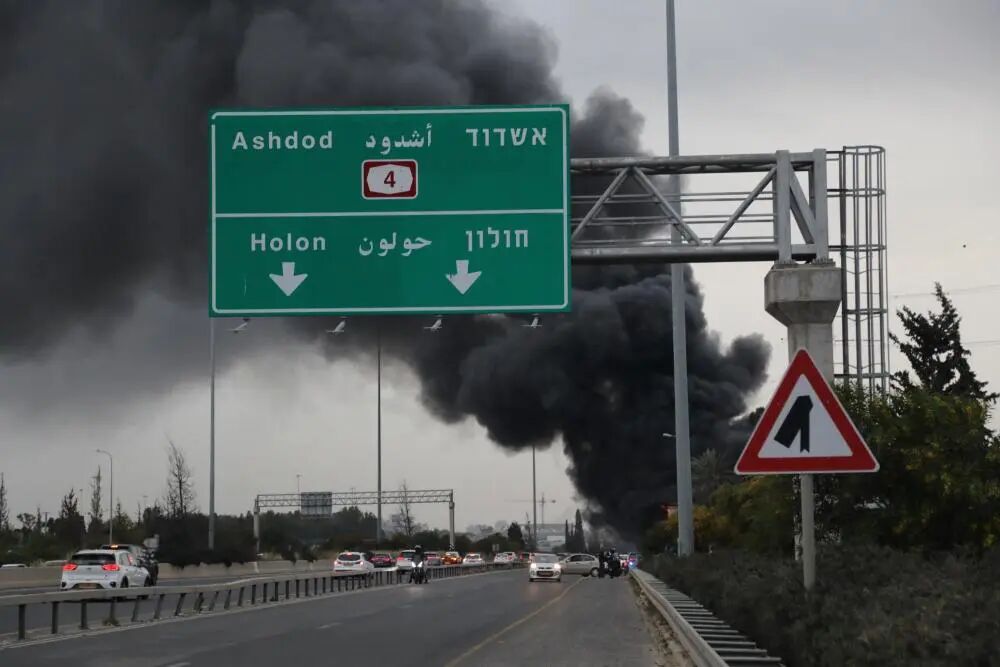3月13日,在以色列中部城市霍隆,遭伊朗导弹袭击的一处地点冒出滚滚浓烟。新华社发(吉德翁·马科维奇摄/基尼图片社)